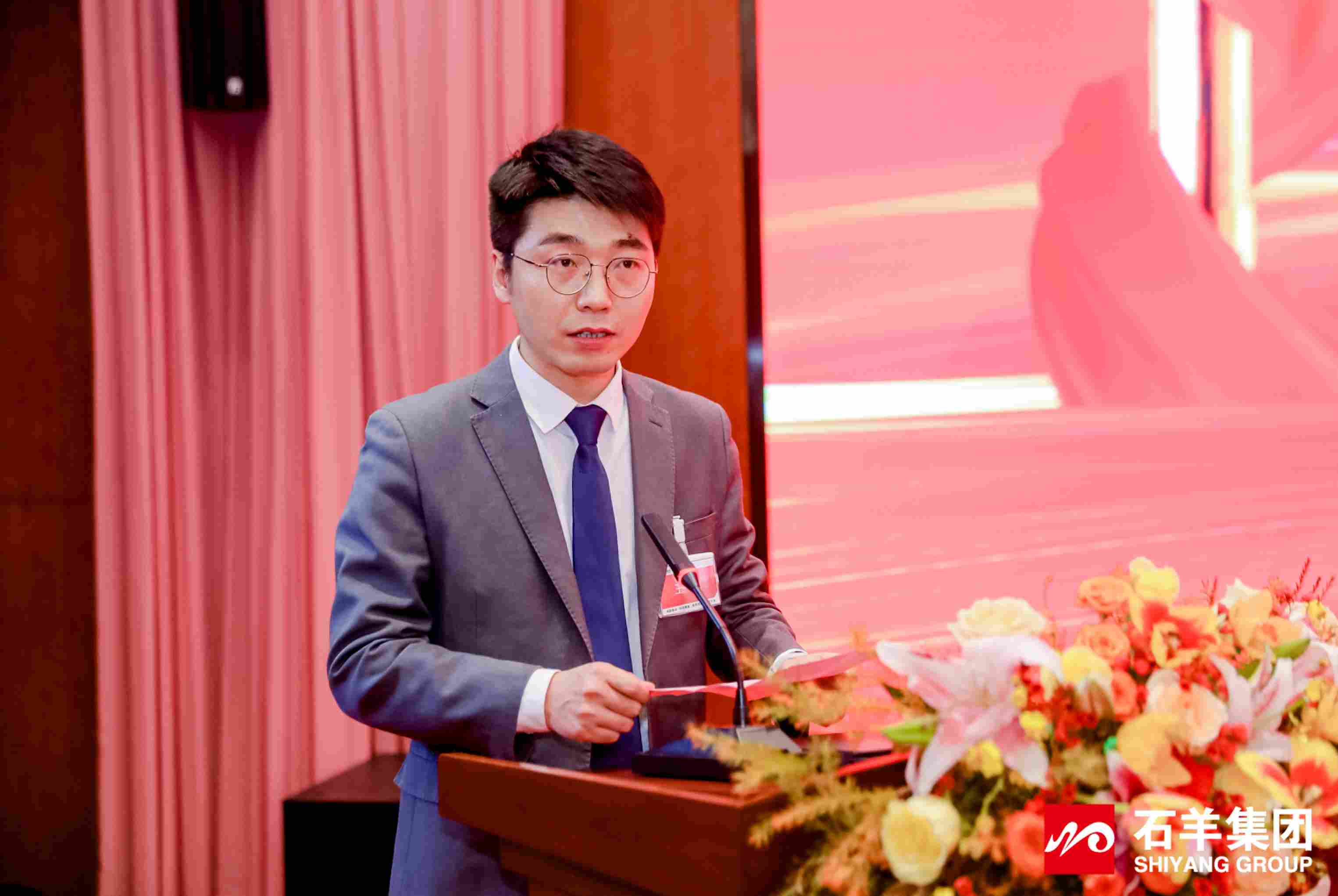 伴随着雄壮嘹亮的国歌声,大会正式拉开序幕。集团副总裁刘恒主持并带领全体参会人员重温2025年发展中的重要事件。一幕幕奋进场景的回溯,让每一位石羊人对过去一年的并肩拼搏有了更深刻的共鸣,也为新一年的前行积蓄了精神力量。