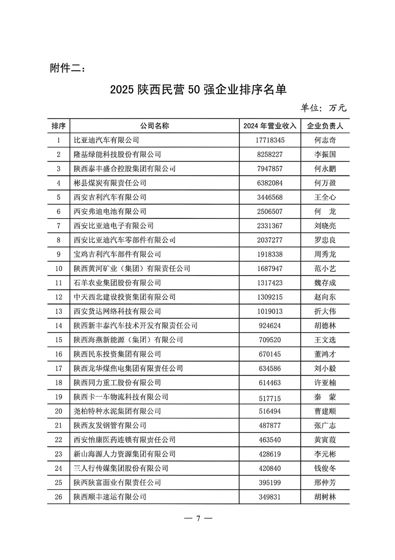2025年,在陕西省发改委、工信厅、财政厅、人社厅、商务厅、国资委、统计局、省委金融办、省总工会等部门的大力支持下,陕西省企业家协会继续组织开展了2025陕西100强企业和陕西民营50强企业排序工作并编印了《2025陕西100强企业分析报告》。